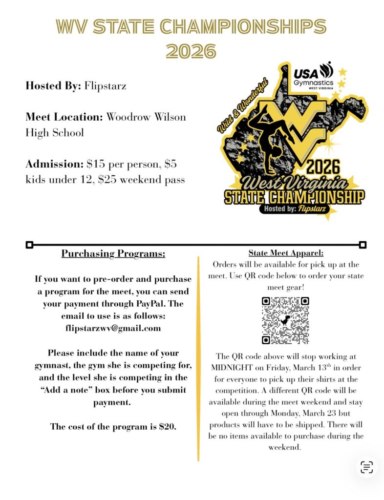 We are excited to announce that the 2026 WV State Meet will be hosted by FlipStarz.